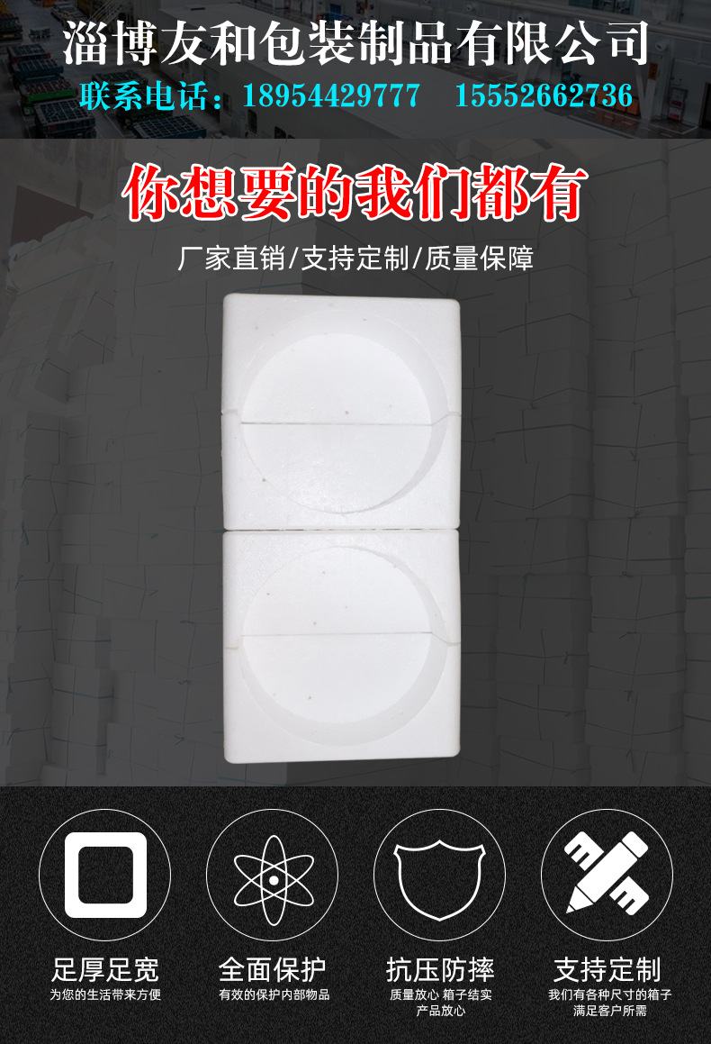 介紹參數圖冊 ????淄博友和包裝制品有限公司是專業的山東泡沫包裝箱加工廠家,本廠主要產品有:泡沫包裝箱,泡沫保鮮箱,水果蔬菜泡沫包裝箱,水果蔬菜泡沫保鮮箱,瓷磚泡沫包裝箱等,產品暢銷全國,深受用戶好評。泡沫包裝定做可以聯系我們網站 http://m.landrill.cn/ 上電話,我們會第一時間跟您聯系。 上一篇140藥盒包裝泡沫箱 下一篇小藥盒泡沫包裝箱